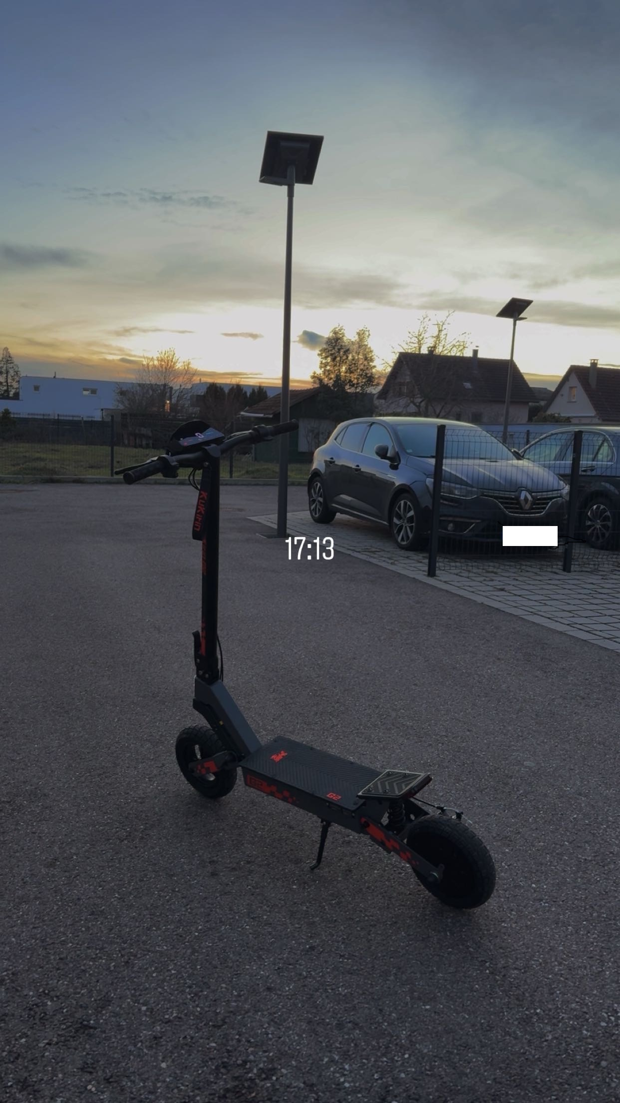 Plaque metal sous deck, alarme/klaxon circulaire sur guidon, stickers orange et blanc, support gsm GUB, crochet potence 3D